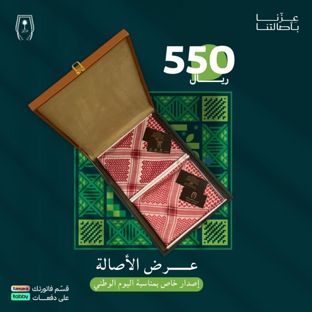 عرض الأصالة مقدم من مشالح المهدي الملكية شماغين ملكي خاص بالختم الأصيل به ابتدينا ولليوم عطاءنا لجلكم ما قل .بمناسبة اليوم الوطني ٩٥ وفرنا ٩٥ قطعة من هذا العرض تأتي بشهادة الإصدار مرقمة من ١ - ٩٥
